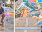 Puerto Vallarta, Jalisco.- En medio del ir y venir de visitantes en la Plaza de Armas, durante la XVIII edición del Festival Madonnari, hay una escena que invita a