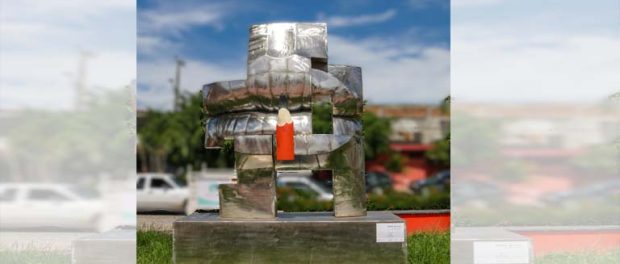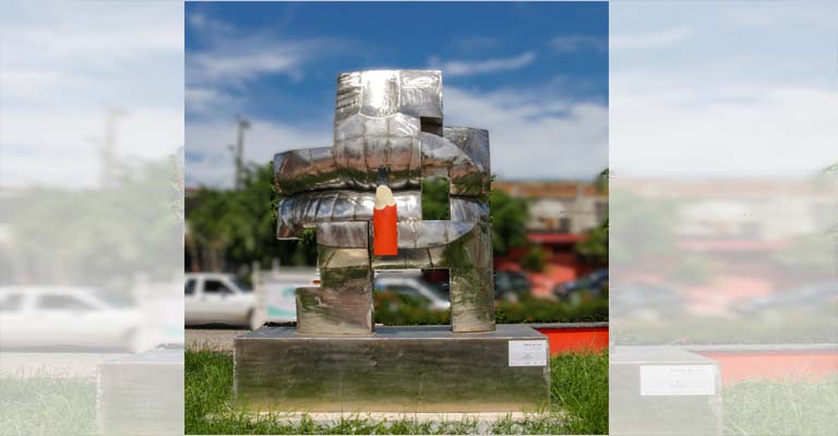 “Edad de Oro” es una es una rica conjunción de volúmenes y formas construida con láminas de acero inoxidable, a las que se agregaron texturas obtenidas con la pulidora y también, en su parte central, pintura de aceite.