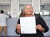 La Maestra Ada Colorina con la obra de Daniel Inchaurregui -