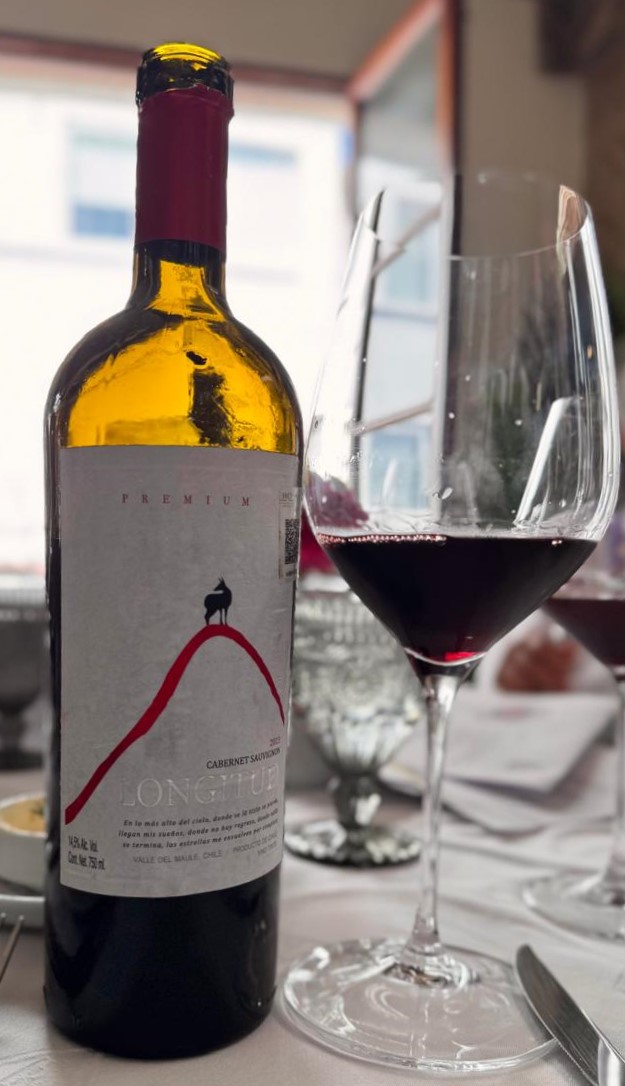 Fue en esta ocasión un excelente vino chileno el que hizo lo honores de maridar atinadamente el lomo de cordero: un cabernet sauvignon Premium Reserve 2013 Longitude de la bodega de Viña de Aguirre, muy cerca de la ciudad de Villa Alegre en el Valle de Maule; de cuerpo medio, destaca por su carácter frutal y sus suaves matices a vainilla, que le confieren una textura tersa y agradable en boca.